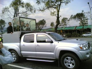 據(jù)臺灣“中廣新聞網(wǎng)”報(bào)道,由馬英九陣營自行訂制的“防彈掃街車”,四千八百毫升的排量,配備加厚鋼板、防彈玻璃,造價(jià)至少二百萬元新臺幣;車身經(jīng)過改裝,方便馬蕭二人站立車上時(shí),也能沿街和選民揮手致意、甚至彎腰和選民握手,進(jìn)行近距離接觸。