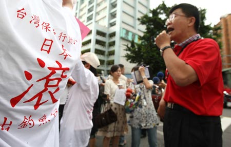 臺(tái)北縣永和市民代表黃錫麟帶領(lǐng)數(shù)名民眾在現(xiàn)場(chǎng)抗議,要求日本政府立即放人并且離開釣魚島。
