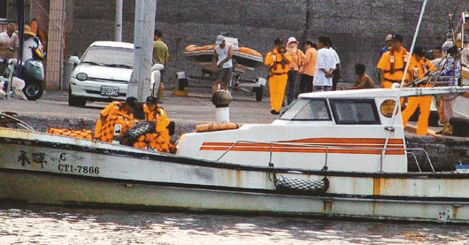 臺(tái)“海巡署”安檢人員加強(qiáng)安檢,登船仔細(xì)檢查防止限制對(duì)象出海。(圖:臺(tái)灣《聯(lián)合報(bào)》)