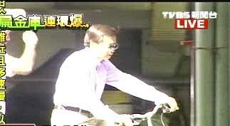 黃志芳帶著墨鏡,騎著腳踏車來(lái)到特偵組接受約談 臺(tái)灣TVBS圖
