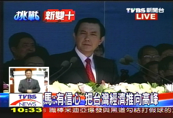 馬英九在臺灣“雙十節(jié)慶”大典發(fā)表講話。(圖:臺灣TVBS)