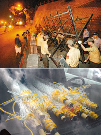 臺北警方在相關(guān)地點布置維安阻隔物。(圖:臺灣《聯(lián)合報》)