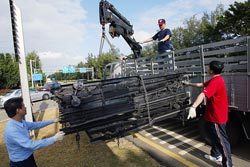 今日上午九時開始,臺“警政署”成立指揮所,由“署長”王卓鈞坐鎮(zhèn)指揮。陳云林中午搭機(jī)抵臺后,即由航警局擔(dān)綱整個維安工作,機(jī)場會罕見凈空,接著由桃園縣警局的部門以接力方式,全程維護(hù)車隊安全,直到抵達(dá)臺北圓山飯店,交由臺北市警局接棒。