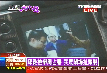 中新網(wǎng)12月15日電 綜合臺灣媒體報(bào)道,陳水扁日前遭到無保釋放,“立委”邱毅今天(15日)前往“監(jiān)察院”檢舉承辦法官周占春瀆職,不過沒想到步出“監(jiān)察院”時(shí),與綠營民眾發(fā)生肢體沖突,甚至有人一把扯下邱毅的頭發(fā)。