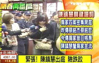 陳鎮(zhèn)慧從去年11月20日到今天,已經(jīng)有77天沒有公開露面,這段期間受到特偵組保護(hù),因為她是扁案最關(guān)鍵也最重要的污點證人之一,而臺北地方法院今天要召開準(zhǔn)備程序庭,陳鎮(zhèn)慧再度現(xiàn)身。