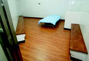 法警長林茂生昨特別在安置陳水扁的候?qū)徥抑,展示上周四為扁?zhǔn)備的行軍折迭床、棉被、毯子及竹編涼枕,還原當(dāng)天實況。林茂生表示,當(dāng)天扁是獨囚一室,同仁苦勸他休息,甚至拍肩安慰他,但扁卻堅持呆坐在椅子上,當(dāng)時整個候?qū)徥页愃庖酝,只?、3名人犯,并不吵雜。