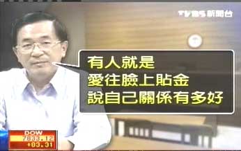 陳水扁說“我太太身體不方便,都是用電話聯(lián)系,有人就是愛往臉上貼金,說自己關(guān)系有多好,明明只到過官邸接待室,就說自己天天走官邸,辜仲諒就是其中一個,我不可能有那么多時間,一個禮拜見他一次,他卻出去就講,我跟陳水扁關(guān)系有多好,樹大招風(fēng)就是這樣!
