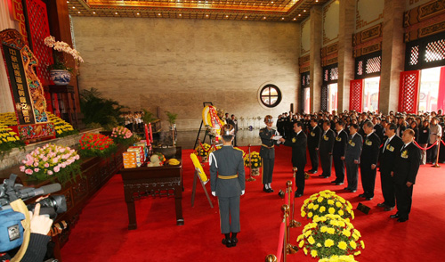 清明節(jié)將屆,“中樞遙祭黃帝陵典禮”上午在圓山忠烈祠舉行,馬英九親率文武百官參與,遵循上香、獻(xiàn)花、三鞠躬禮等儀式,遙祭黃帝陵,“行政院長(zhǎng)”劉兆玄、“司法院長(zhǎng)”賴(lài)英照等出席陪祭,典禮莊嚴(yán)肅穆。