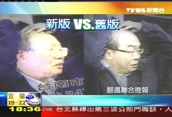據(jù)臺灣TVBS報(bào)道,黃永田又有新名片,乍看好像是原本那張掀掉邱毅發(fā)片的新聞?wù)掌,不過仔細(xì)看,邱毅變了一張臉,變成一位老先生,比對一下新舊版本,明顯發(fā)現(xiàn)兩張臉孔大不同。
