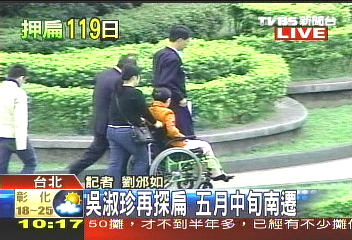 中新網(wǎng)4月27日電 據(jù)臺灣TVBS報道,陳水扁妻子吳淑珍傳出在5月20日以前,就要南遷到高雄新家,今天(27日)兒子陳致中也特別北上,和吳淑珍一起探望陳水扁。