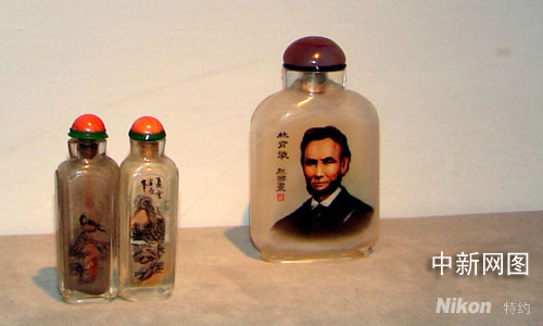 此次展出的二百多件鼻煙壺是臺(tái)灣收藏家葉博文二十多年的心血。據(jù)了解,葉先生原來是作玉雕收藏的,上世紀(jì)九十年代初,葉與歷史博物館合作,挑選近二百件玉雕珍品,其中也包括部分翠玉、白玉、瑪瑙等寶石鼻煙壺,從南非到歐洲五個(gè)國家作巡回展覽。令葉先生驚訝的是鼻煙壺所到之處,竟是受到人們的如此喜愛,之后,葉開始側(cè)重鼻煙壺的收藏。