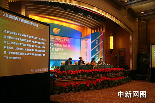 [中共成都市委常委、宣傳部長(zhǎng)郝康理]: 各位新聞界的朋友們,女士們,先生們,大家下午好。時(shí)值金秋九月,美麗的蓉城榮幸地迎來(lái)了第四屆世界華文傳媒論壇的舉行。為了讓廣大海外媒體更好地了解成都,今天我們專門在此舉行“世界華文傳媒聚焦成都”專題記者招待會(huì),由成都市領(lǐng)導(dǎo)向各位記者介紹成都市的基本情況,以及成都市舉辦本屆世界華文傳媒論壇的相關(guān)情況。出席今天記者招待會(huì)的領(lǐng)導(dǎo)有:中共成都市委副書(shū)記、成都市市長(zhǎng)葛紅林先生;成都市委常委孫平先生,成都市副市長(zhǎng)何華章先生,以及成都市發(fā)展改革委員會(huì)、投資促進(jìn)委員會(huì)、商務(wù)局等部門的負(fù)責(zé)人。除了參加本屆論壇的海外記者出席記者招待會(huì)外,還有國(guó)內(nèi)外眾多的媒體記者參加招待會(huì),在這里向大家表示熱烈的歡迎。為了讓第一次光臨成都的媒體朋友充分了解成都,首先請(qǐng)大家看張藝謀導(dǎo)演拍攝的宣傳片,《成都—一座來(lái)了就不想離開(kāi)的城市》。 |