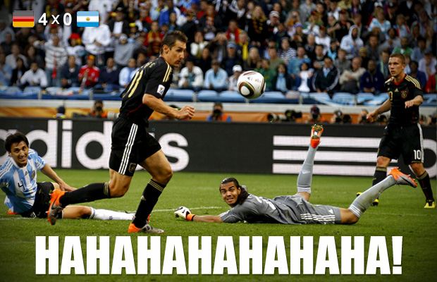 北京時間7月3日,阿根廷0比4不敵德國,對于這個結(jié)果最高興的要數(shù)巴西人了,一天前還受到阿根廷人冷嘲熱諷的巴西人笑了,《環(huán)球報》網(wǎng)站配發(fā)了一張德國球迷開懷大笑的照片,圖注很簡單——“Hahahahahahahahaha”。