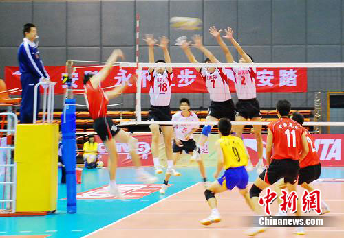 中新網(wǎng)太倉7月19日電(張達(dá))2010年安踏全國男子排球錦標(biāo)賽18日在太倉市體育館完成了最后一日的比賽。在江蘇隊與河南隊的冠亞軍決賽中,江蘇隊在先失兩局的情況下,連扳三局,實現(xiàn)大逆轉(zhuǎn),奪得冠軍。