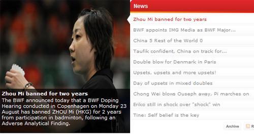 圖為國(guó)際羽聯(lián)在其官網(wǎng)上公布對(duì)周蜜的處罰