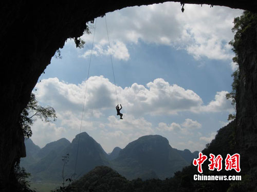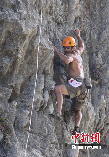 中新網(wǎng)河池9月18日電(陸旺)9月18日,廣西羅城國(guó)際攀巖賽在中國(guó)唯一的仫佬自治縣——廣西河池市羅城仫佬族自治縣的月亮山開(kāi)賽。被視為2010羅城攀巖旅游節(jié)的重頭戲,中外80名攀巖愛(ài)好者以及部分觀眾上午8點(diǎn)鐘便聚集在形狀宛若一輪明月的月亮山下,相互“攀比”、切磋攀巖技術(shù)。