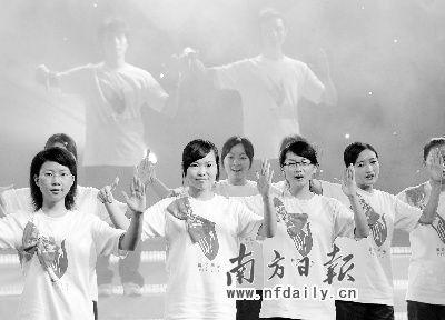 大學(xué)生們晚會現(xiàn)場學(xué)習(xí)手語,為亞運(yùn)會到來做全面準(zhǔn)備。南方日報(bào)記者王輝攝