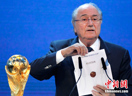 據(jù)悉,投票結果揭曉后,俄羅斯總理普京表示將前往蘇黎世,對國際足聯(lián)表示感謝。