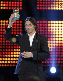 12日晚,效力于意甲國際米蘭隊的瑞典國腳伊布拉希莫維奇在斯德哥爾摩榮獲2007年瑞典最佳男足運動員稱號。