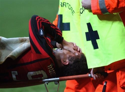本場(chǎng)比賽進(jìn)行到57分鐘時(shí),AC米蘭0比1落后對(duì)手。對(duì)鋒線上的搭檔帕洛斯基和吉拉迪諾不滿(mǎn)的主教練安切洛蒂換上了羅納爾多和因扎吉。第60分鐘,奧多右路起球,沃諾隊(duì)隊(duì)的防守球員維迪加爾手球,主裁判吹罰點(diǎn)球并向維迪加爾亮出黃牌。羅納爾多因試圖跳起來(lái)攔截奧多的傳球受傷,抱著左膝倒地,表情痛苦地以手掩面,隨即哭著被擔(dān)架抬下直接送往更衣室。