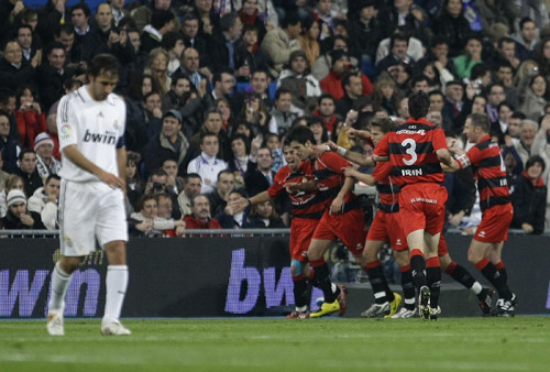 西班牙當(dāng)?shù)貢r(shí)間11日21時(shí)(北京時(shí)間11月12日04時(shí)),2008-09賽季西班牙國王杯第3輪(1/16)次回合一場焦點(diǎn)戰(zhàn)在伯納烏球場展開爭奪,皇家馬德里主場4比3取勝皇家聯(lián)合,勞爾上演帽子戲法,20歲小將布埃諾打入世界波,但丙級(jí)對(duì)手最后時(shí)刻進(jìn)球?qū)⒖偙确侄ǜ?比6(首回合皇馬2比3告負(fù)),皇家聯(lián)合憑借客場進(jìn)球多優(yōu)勢淘汰皇馬。