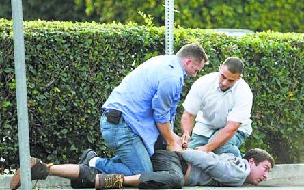 記者顯然不是保鏢的對手,貝克漢姆的兩名保鏢都曾經(jīng)是海軍陸戰(zhàn)隊隊員。他們很快就將記者制服,并專業(yè)地將記者雙手用手銬拷起來壓在地上。直到警察趕到,記者仍然被反拷在地上。記者的相機被一名保鏢直接扔到了垃圾桶內(nèi)。警察趕到后,叫來了救護車,不過當事的3人都拒絕接受治療。隨后3人被帶到警察局,不過貝克漢姆已經(jīng)通知律師處理此事! 我們已經(jīng)將事情寫了報告,目前還沒有人遭扣留或起訴。如果需要,我們會繼續(xù)調(diào)查”,比佛歷山警察局發(fā)言人表示。據(jù)悉,記者在當時拍攝的畫面已經(jīng)交給警方。