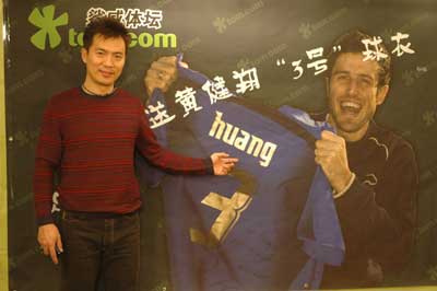 “他的瘋狂來自我,來自那個(gè)點(diǎn)球……”昨天格羅索通過音頻向黃健翔慰問,并空運(yùn)送來寫有“huang”的意大利隊(duì)3號(hào)球衣。