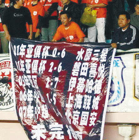 中超標(biāo)語甚至成為奧運后中國足球的一棵救命稻草,讓聯(lián)賽不至于清湯寡水,還別有滋味。球迷因為寫標(biāo)語而引發(fā)對足球的關(guān)注更是無價之寶。