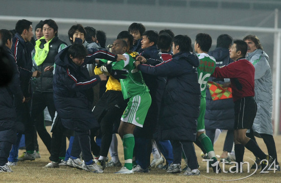 11月12日,北京國(guó)安與天津泰達(dá)賽后,雙方爆發(fā)斗毆,埃爾維斯與對(duì)方扭打