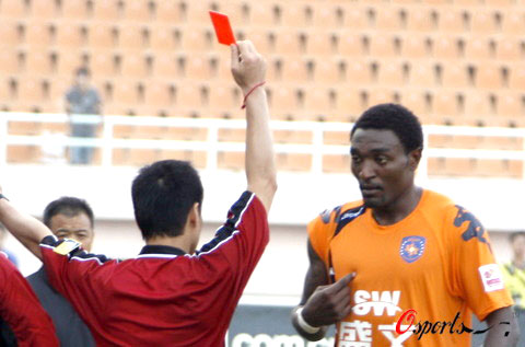 此時(shí),正在青島隊(duì)后場(chǎng)的外援保羅尤如吃錯(cuò)藥一般,儼然武圣關(guān)羽“靈魂附體”,從后場(chǎng)狂奔50米沖到事發(fā)地點(diǎn),分別與遼寧隊(duì)幾名本土球員以及外援格里菲斯發(fā)生爭(zhēng)執(zhí),甚至還施展鎖喉大法,雙手卡住格里菲斯的咽喉,頗具千里走單騎,過(guò)五關(guān)斬六將之風(fēng)。主裁當(dāng)即將這位勇若張飛、豪比關(guān)羽的黑面大俠請(qǐng)出了綠茵場(chǎng)。