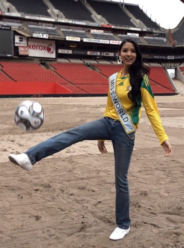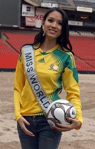 中新網(wǎng)11月21日電 當(dāng)?shù)貢r(shí)間22日,2009年聯(lián)合會杯抽簽儀式將在南非城市約翰內(nèi)斯堡舉行。包括世界小姐張梓琳在內(nèi)的各國佳麗應(yīng)邀前往,在約翰內(nèi)斯堡的埃利斯球場大秀球技。