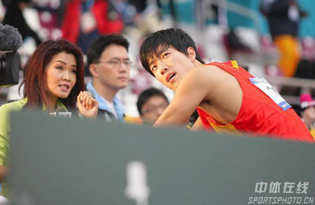 冬日娜與劉翔私語(yǔ)。圖據(jù)中體在線
