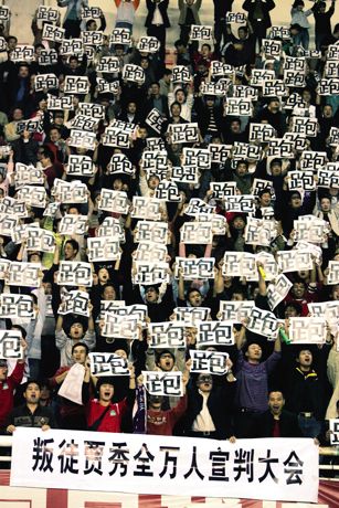 中超賽場(chǎng)上各種狀況層出不窮,在這樣的“亂世”中生存,球迷們?cè)缇蛯W(xué)會(huì)用其他方式自?shī)首詷?lè)了。與其哭天搶地為無(wú)藥可救的中國(guó)足球哀怨,不如挖空心思想一條娛樂(lè)大眾的標(biāo)語(yǔ)吧。從河南主場(chǎng)“專(zhuān)治各種不服”,到“叛徒賈秀全萬(wàn)人宣判大會(huì)”,從“海濱多到唐城賓館”,到“魯治申”,我們看到了一個(gè)日益娛樂(lè)化的中國(guó)足球。