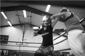 對手確實(shí)沒那么強(qiáng)大。她沒坐過牢,只是個從明尼蘇達(dá)州坐了8小時長途車趕到這里的普通人,她抽煙,這是她練習(xí)拳擊10年來的第一場比賽。謝莉從鈴響的第一秒就開始猛擊,第二回合對手被強(qiáng)制數(shù)八,第三回合,謝莉左手推開對方的拳套,用右手猛擊,這次是對方在發(fā)抖。再過了一會,裁判舉起了謝莉的手。