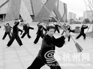 呂教練是國家一級太極拳教練,除了有扎實的太極拳基礎(chǔ)外,對營造健身點小團體氛圍也很有一套,在他那里打太極的學員,互相之間都會弄得很熟絡(luò)。呂教練說,他們那里每周雙休日如果不下雨,會集體組織去爬山,每年大家約個時間,還會出趟遠門,到現(xiàn)在為止已經(jīng)去過了普陀、五臺山、三清山等地方,呂教練的概念,健身很重要的一方面,是心態(tài)和心情,在全杭州最美的地方健身,心情怎么都會好起來的。