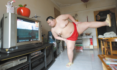 短短4年時(shí)間,體重從70公斤增加到了至少150公斤,沙坪壩區(qū)陳家灣一胖哥喜歡上了冷門(mén)的相撲運(yùn)動(dòng),并打算3年后自費(fèi)前往日本學(xué)習(xí)相撲術(shù),成為一名職業(yè)相撲手。這名“重慶相撲男”的照片一貼上網(wǎng)就成了網(wǎng)絡(luò)紅人。由于重慶的相撲選手只有他一個(gè),一直找不到合適的對(duì)手過(guò)招,無(wú)奈之下,前日晚上,這位紅人在天涯上發(fā)帖,正式邀請(qǐng)一位泰拳選手進(jìn)行一場(chǎng)另類(lèi)的比賽。