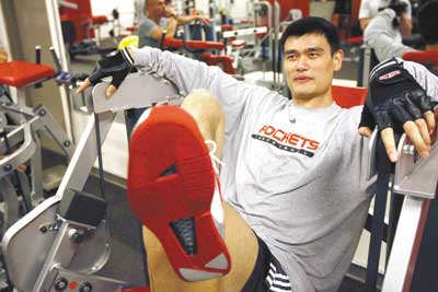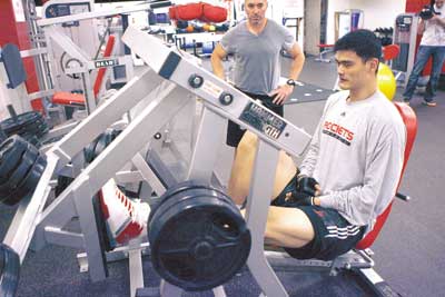 隨著傷勢逐漸好轉(zhuǎn),姚明已開始進(jìn)行恢復(fù)性訓(xùn)練。目前姚明每天都會將很大精力投入在力量器械上,從而保證缺陣期間的各項(xiàng)力量指數(shù)不至于下降,而腿部力量訓(xùn)練則是姚明訓(xùn)練中的重點(diǎn)。