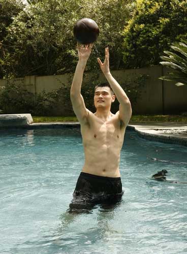 對(duì)于“水療”這種特殊的體能恢復(fù)方式,姚明也是樂(lè)在其中。泳池內(nèi)光著膀子的姚明顯得格外高興。