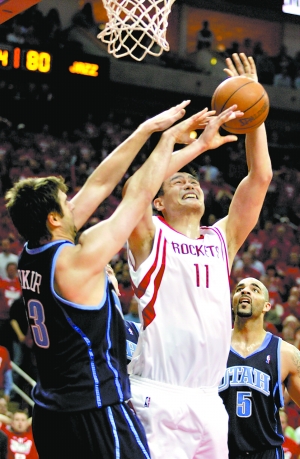 在防守時,布澤爾盡管身高不及姚明,但卻可以用強壯的身體不斷地把姚明推出進攻區(qū)域。而一旦姚明試圖表演自己的中距離投籃,奧庫則會及時跟上。你看看姚明上賽季與爵士交手時35%的命中率,確實是大失水準。