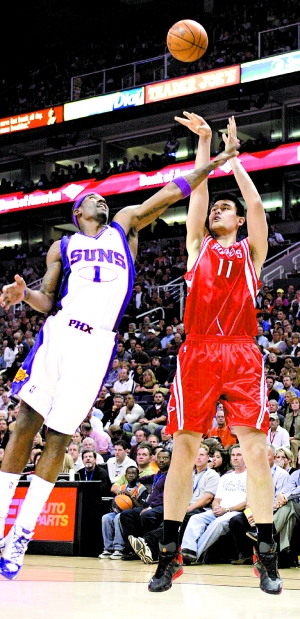 斯塔德邁爾身高臂長,而且充滿機動性的打法是姚明最頭疼的。每一次交手,斯塔德邁爾似乎總想用扣籃來壓制姚明,恰恰姚明在防守他時又很容易犯規(guī)。不過奧尼爾現在也在太陽,兩隊交鋒時,姚明更大的任務是防守奧尼爾。