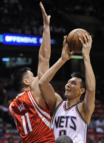 第三節(jié)開場后雙方重新?lián)Q上首發(fā)主力陣容,哈里斯?fàn)顟B(tài)回升。此后易建聯(lián)又送出防守三秒,直接將姚明送上了罰球線。之后籃網(wǎng)打出6-1小高潮,將分追至46-62。此后易建聯(lián)面對姚明籃下防守將球打入籃筐,姚明隨即回敬一記中投。3分45秒,阿聯(lián)接卡特分球終于命中三分。三節(jié)結(jié)束時火箭86-65領(lǐng)先。