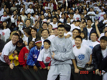 然而,令現(xiàn)場觀看比賽的華人球迷更為激動(dòng)的是,比賽結(jié)束后,姚明在火箭隊(duì)新聞官尼爾森-路易斯的陪同下,來到了他們中間。在休斯頓姚明球迷俱樂部十幾位理事的精心組織下,姚明帶著勝利后的微笑,分四次先后與耐心坐等在觀眾席上的數(shù)千名球迷合影。這一歷史性場景后來多次被全球的體育報(bào)刊雜志登載出來。