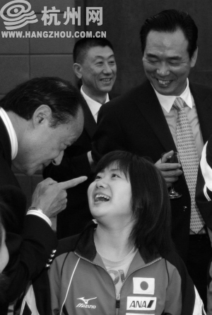 本報訊 因為堵車,趕到杭州天馬大酒店時晚點了,“小愛等了你一刻鐘”,福原愛的教練鄭慧萍透露:小愛隨日本隊下樓赴歡迎晚宴去了,“別急,我來安排”。