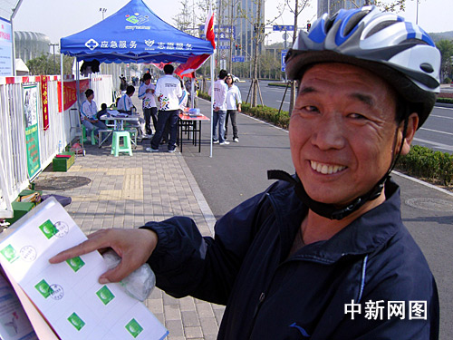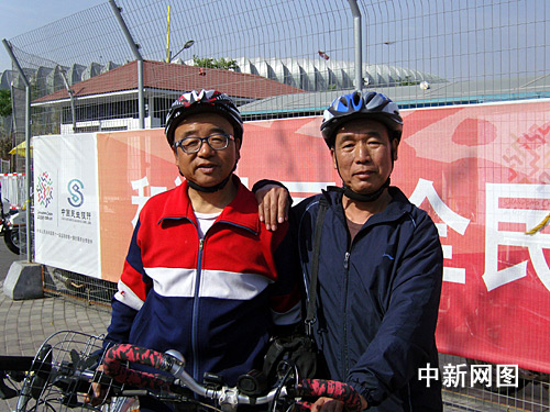 中新網(wǎng)濟(jì)南10月25日電(記者 翁陽)10月25日是飛人劉翔進(jìn)行第十一屆全運(yùn)會(huì)110米欄決賽的日子。中午時(shí)分,本社記者在濟(jì)南奧體中心巧遇兩名專程從石家莊趕來觀看劉翔比賽的六旬老翁。杜存生和李云江這兩位老人神采奕奕,一身專業(yè)體育裝備,他們以單車每日百余公里的速度,用時(shí)三天來到濟(jì)南。