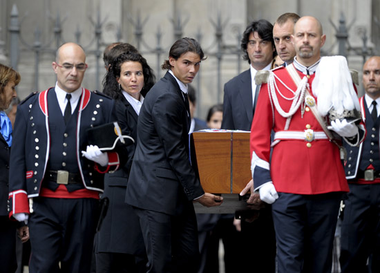 晚上18時,他的葬禮在大教堂開始,西班牙國王胡安-卡洛斯攜妻子索菲婭、王儲費利佩及妻子、埃倫娜公主和克里斯蒂娜公主以及羅格、西班牙著名F1車手阿隆索、西班牙網(wǎng)球天王納達(dá)爾、巴薩俱樂部主席等出席。