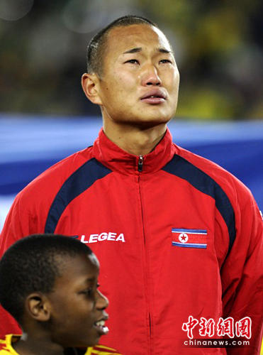 朝鮮國歌背景下,今日鄭大世滿面難抑的淚水或許將成為未來很長一段時間里人們對南非世界杯的幾個難忘片段之一。