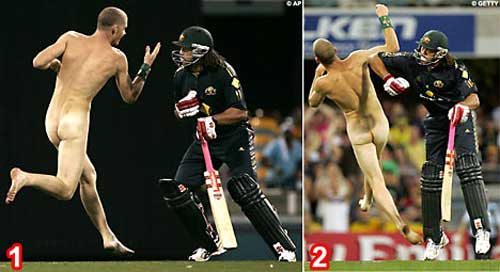 澳板球比賽“很黃很暴力” 球員棒擊裸奔者(圖)