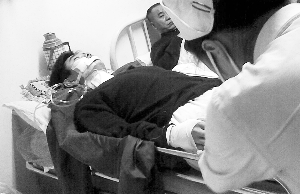 昨晚7時許,經(jīng)過兩小時的手術(shù),李明被送入監(jiān)護病房。醫(yī)生表示,其頸部、臉部被刀割傷,傷口不深,但都有七八厘米長,分別縫合17針和13針,此外,傷者左手虎口位置還有一處三角形狀的傷口,縫合4針。暫時無法說話,無生命危險。