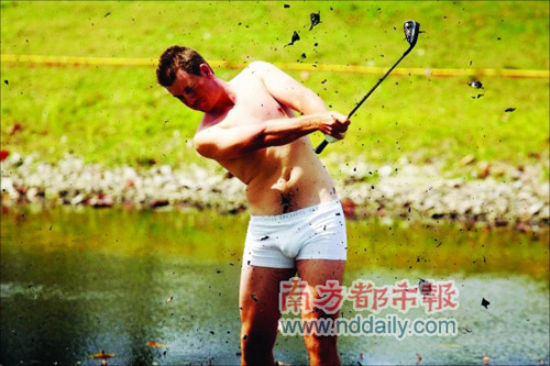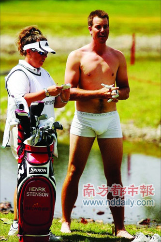 日前,高爾夫WGC-CA錦標(biāo)賽首輪,瑞典高爾夫名將亨利克·斯滕森脫光衣服救球的“壯舉”無(wú)疑是賽場(chǎng)上最吸引眼球的風(fēng)景。當(dāng)日在第3洞4桿洞,斯滕森直接將球開(kāi)進(jìn)了球道旁的淤泥中,瑞典人一不做二不休,索性脫掉衣服鞋襪,僅剩一條內(nèi)褲徑直走進(jìn)泥里,引起場(chǎng)邊觀(guān)眾一陣騷動(dòng),斯滕森不負(fù)眾望,這一洞一舉吞下一個(gè)柏忌,最終以69桿排名第17位。