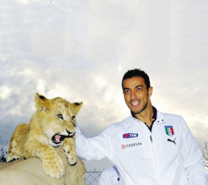 6月15日,意大利憑借羅西的梅開(kāi)二度和德羅西的進(jìn)球3比1戰(zhàn)勝了美國(guó)。在贏得了首場(chǎng)比賽后,為了更好地認(rèn)識(shí)和了解南非,意大利國(guó)家隊(duì)放假半天,全隊(duì)前往位于約翰內(nèi)斯堡的獅子野生動(dòng)物園參觀。不少球員都是第一次見(jiàn)到這些兇猛的動(dòng)物并與其親密接觸,大家紛紛掏出手機(jī)與動(dòng)物們合影留念。在這次游園中,一只雪獅成了意大利球員的最愛(ài),卡納瓦羅、贊布羅塔、夸利亞雷拉以及羅西等球員都對(duì)他愛(ài)不釋手,而主帥里皮則似乎偏愛(ài)長(zhǎng)頸鹿,他還親自拿飼料喂了一次長(zhǎng)頸鹿。